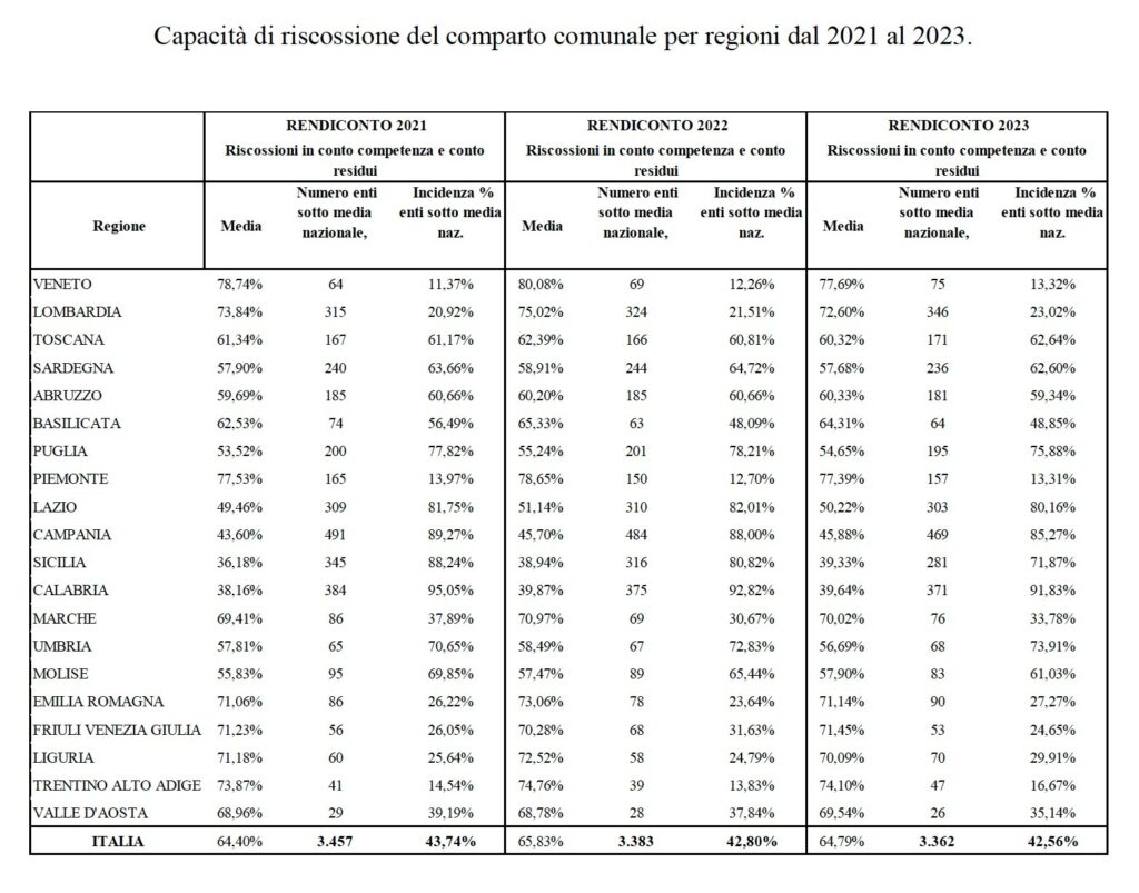 È una situazione caratterizzata da una forte disomogeneità tra le diverse regioni, come aveva anche sottolineato la Ragioniera Generale dello Stato, Daria Perrotta, intervenendo nei mesi scorsi al Senato in un’audizione sul grande magazzino dei crediti dello Stato (vedi tabella). In quel grande «calderone», pari in tutto a 1.280 miliardi a fine gennaio 2025, i crediti degli enti locali valgono circa 42 miliardi, di cui 27 relativi ai comuni.
