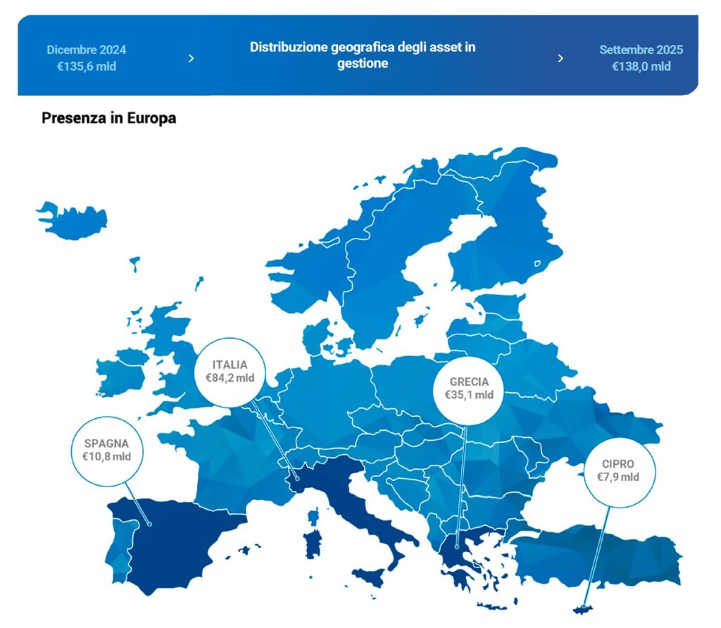 Il nuovo business ha generato un Gross Book Value di 12,4 miliardi di euro, centrando con tre mesi di anticipo l’obiettivo annuale rivisto al rialzo, di cui 9,2 miliardi derivano da nuovi mandati e 3,2 miliardi dai clienti già esistenti, a conferma della fiducia delle banche nella piattaforma integrata del gruppo. Anche le attività di recupero crescono, raggiungendo 3,8 miliardi di euro, con un tasso di recupero migliorato al 4,5%.