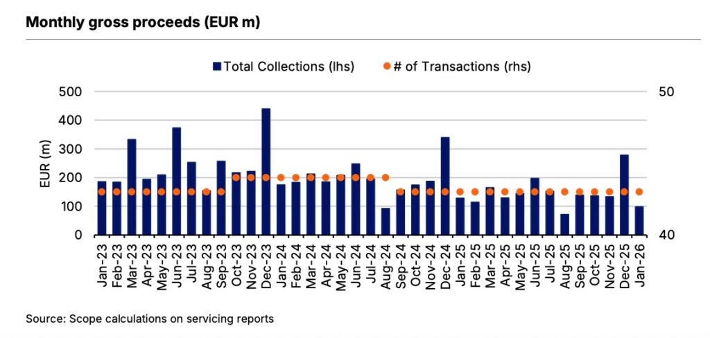Lo ha segnalato l’osservatorio mensile di Scope Ratings che segue la performance di un universo statico di securitisation valutate dalla società di rating e si basa sui report mensili di servicing disponibili fino a gennaio 2026.
