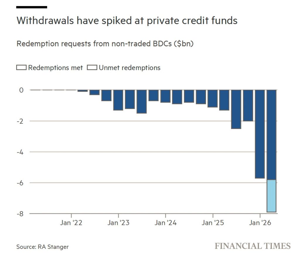 Alimentate dalla cronaca finanziaria degli ultimi giorni, si moltiplicano le analisi e le preoccupazioni dei grandi media anglosassoni sulle sorti del private credit Usa. La principale notizia di cronaca, nelle ultime ore, riguarda Blue Owl Capital, che ha introdotto limiti ai riscatti su due dei suoi principali fondi di private credit dopo un primo trimestre segnato da richieste di rimborso senza precedenti, segnale di un cambio di clima tra gli investitori e di una crescente cautela verso l’asset class.