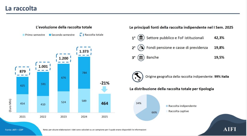 La raccolta è stata trainata principalmente dal settore pubblico e dai fondi di fondi istituzionali, seguiti da fondi pensione, casse di previdenza e banche, con una netta prevalenza di capitali domestici (99%). Sul fronte degli investimenti, i soggetti italiani hanno realizzato il 61% delle operazioni, mentre gli operatori internazionali hanno rappresentato il 78% dell’ammontare investito.