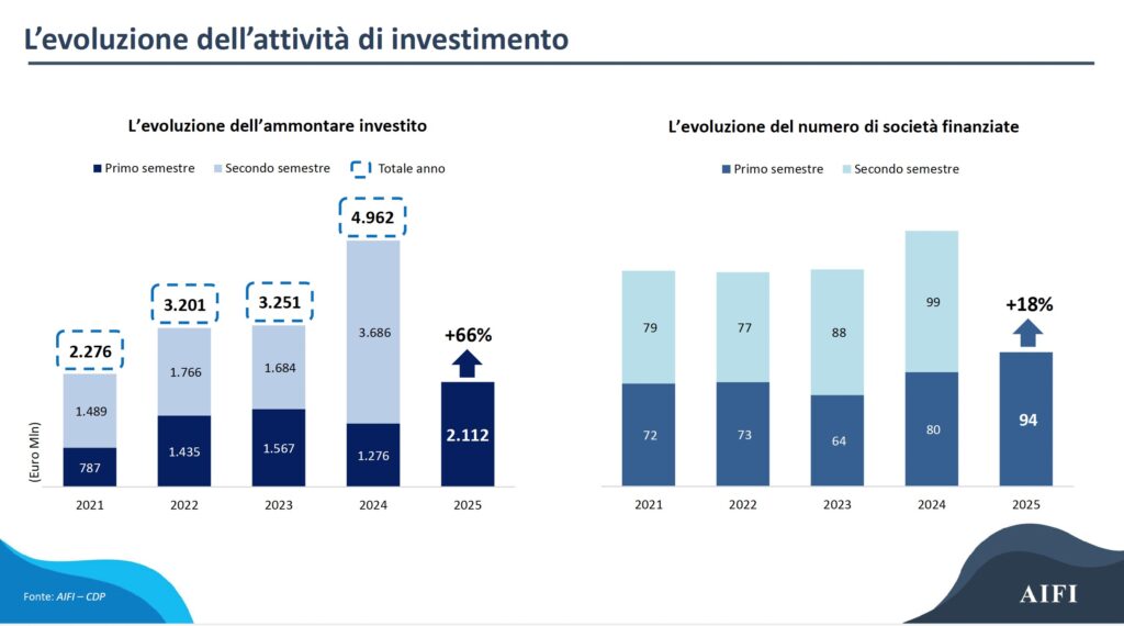 Il mercato del private debt in Italia continua a crescere in termini di investimenti, ma mostra segnali di rallentamento sul fronte della raccolta. Secondo i dati presentati da AIFI (Associazione Italiana del Private Equity, Venture Capital e Private Debt) in collaborazione con Cassa Depositi e Prestiti, nei primi sei mesi dell’anno l’ammontare investito ha raggiunto 2.112 milioni di euro, segnando un incremento del 66% rispetto allo stesso periodo del 2024, mentre la raccolta complessiva si è attestata a 464 milioni, in calo del 21% rispetto ai 589 milioni raccolti nel primo semestre dello scorso anno.