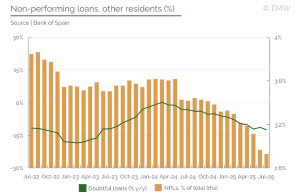 A fine luglio l’Npl ratio delle banche spagnole è sceso a nuovi minimi (2,93%) dal 2,98% di fine giugno. Lo attestano i dati della Banca di Spagna riferiti da CEEMarketWatch.