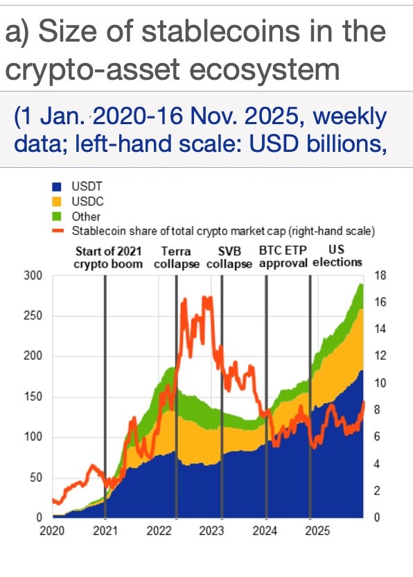 L’Europa non può ignorare la crescita delle stablecoin, perché il dominio dei token in dollari aumenta l’esposizione indiretta ai rischi del mercato finanziario statunitense. Nonostante si parli spesso di pagamenti e risparmio nei Paesi emergenti, l’uso reale delle stablecoin resta concentrato quasi esclusivamente nel trading crypto, che assorbe l’80% dei volumi, mentre i flussi retail restano sotto l’1%. Finché l’adozione rimane limitata, l’impatto sul sistema bancario europeo è contenuto, ma un uso più ampio – soprattutto se in futuro fossero consentiti interessi sulle stablecoin – potrebbe spostare parte dei depositi dalle banche a questi strumenti digitali, rendendo la raccolta più instabile e vulnerabile a eventuali run.