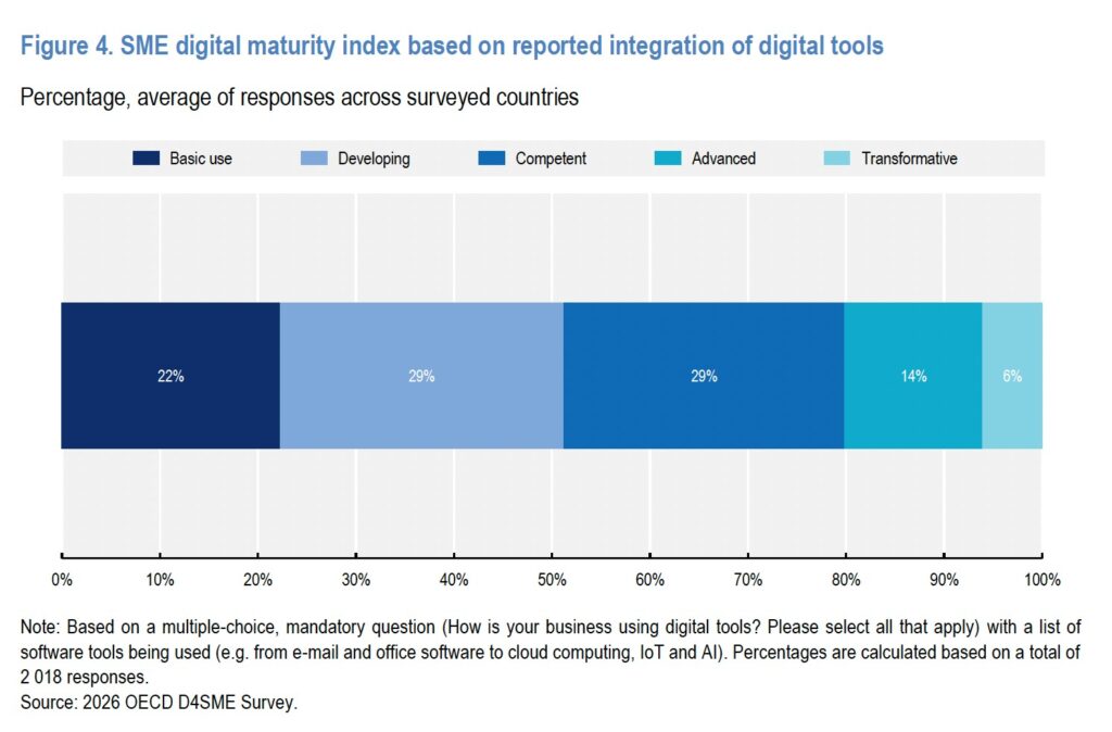 L’Ocse pubblica una survey alla quale hanno preso parte 12 Paesi. Aumenta comunque la distanza tra piccole e grandi imprese nell’utilizzo di strumenti digitali